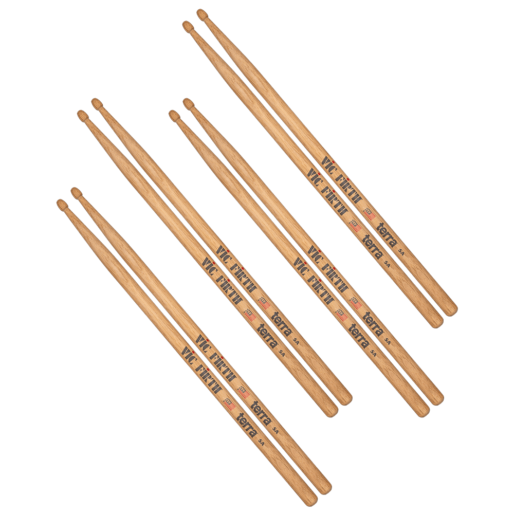 A linha Vic Firth Terra celebra a beleza natural da madeira utilizada em cada baqueta.