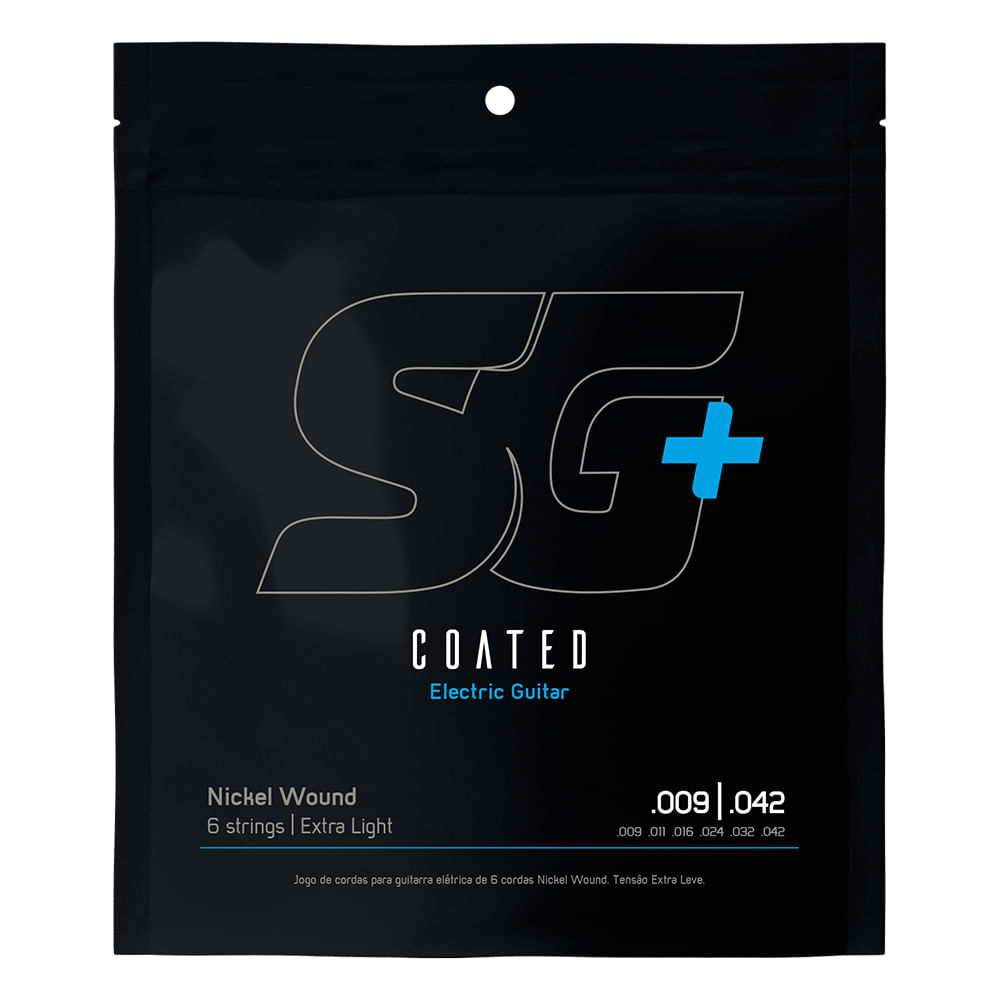 As cordas SG+ possuem nano revestimento em todas as cordas (bordões e primas) que as protege da oxidação natural que ocorre com certos tipos de metal, no caso das cordas, o aço. Esse revestimento proporciona uma “pegada” e timbre de corda nova por mais tempo do que as cordas comuns.
